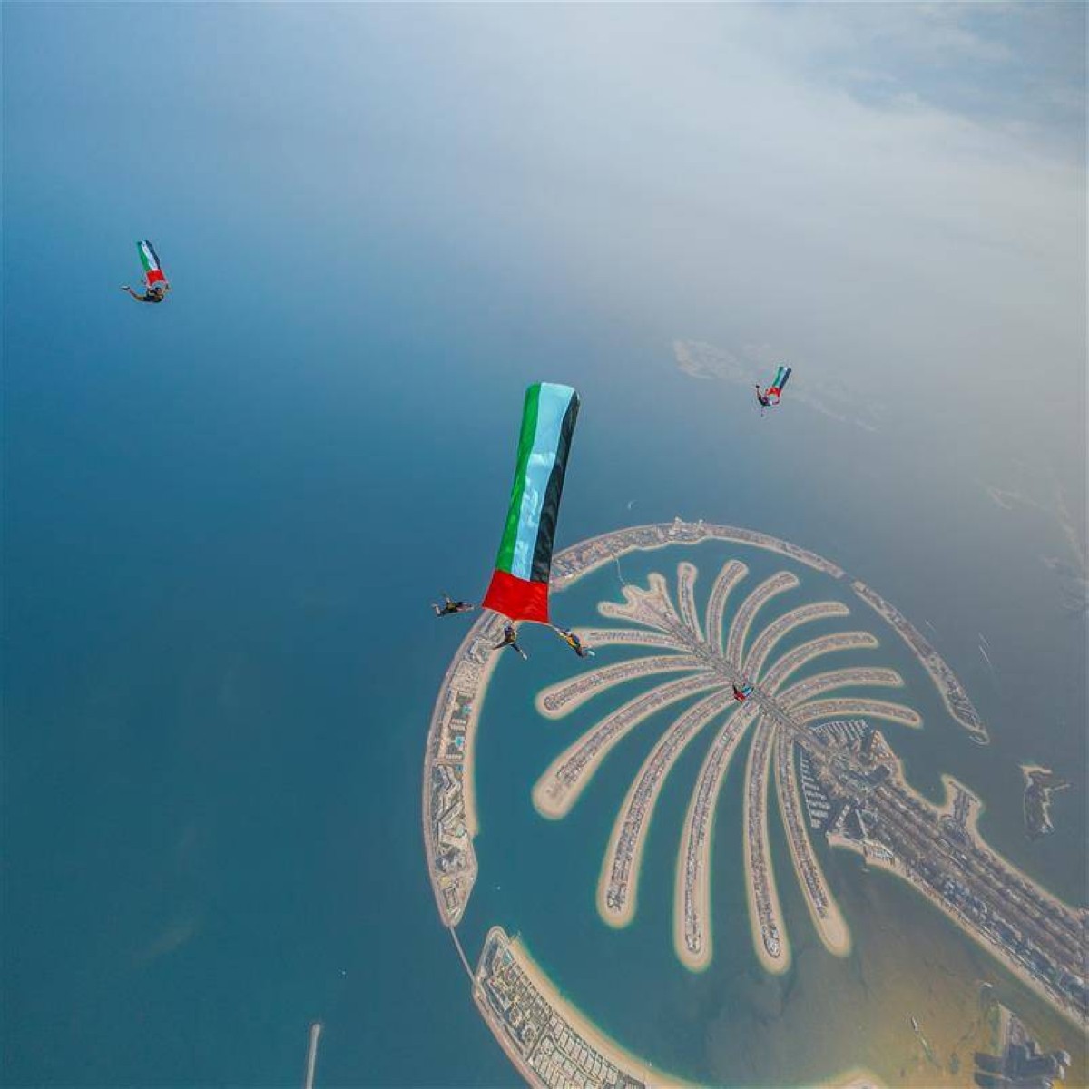 رفعت «سكاي دايف دبي» علم دولة الإمارات العربية المتحدة عالياً خفاقاً، خلال قفزة خاصة بعنوان «ارفع العلم» من ارتفاع 13000 قدم فوق نخلة جميرا. وأقيمت القفزة في موقع القفز الخاص بـ«سكاي دايف دبي» في النخلة، وعلى خلفية ساحل دبي الخلاب، لتعلن عودة واحدة من أبرز التجارب المليئة بالإثارة في المدينة، في لحظة تعبر عن التضامن مع دبي ومجتمعها مع استمرار المدينة في التقدم نحو المستقبل.
