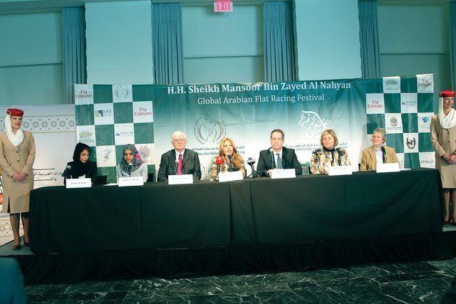 أعلن ذلك خلال المؤتمر الصحافي الذى عقد أول من أمس بمقر سفارة الإمارات بواشنطن، بحضور لارا صوايا مديرة مهرجان سمو الشيخ منصور بن زايد آل نهيان العالمي للخيول العربية، رئيسة سباقات الفروسية للسيدات بالاتحاد الدولي لسباقات الخيول العربية، وكاتي سموك رئيسة جمعية الخيول العربية بأميركا، وكينسمان رايت مديرة جائزة دارلي اوورد، وشذرا الحجاج الفارسة الإماراتية والفارسة العمانية فاطمة المنجي، وستيفن بوي ممثل شركة أبوظبي للاستثمار احدى الشركات الراعية الدائمة للمهرجان، وشارون كلارك مديرة سباقات سمو الشيخ طحنون بن زايد آل نهيان، وعلي موسى الخميري مدير عام نادي دبي للفروسية.