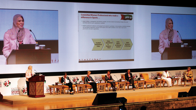وأكدت سموها ان هذا اليوم والذي يعد الأول من نوعه على مستوى الشرق الأوسط لما يمثله من أهمية، سواء بشعاره أو توقيته دعما للمرأة في المجال الرياضي، والتي تمثل شريحة فعالة ومؤثرة في هذا القطاع، وقالت كلنا ثقة أن يسهم مؤتمركم في دعم الرياضة النسائية، وتوسيع آفاق نجاحاتها، لما لهذه الرياضة من رسالة ثقافية وعلمية وصحية هادفة، تسعى إلى التحفيز على مشاركة المرأة منذ نعومة الأظفار، وعلى مقاعد الدراسة لمختلف الأنشطة الرياضية، بما ينعكس على حياتها في مختلف الجوانب النفسية والاجتماعية بالفائدة.