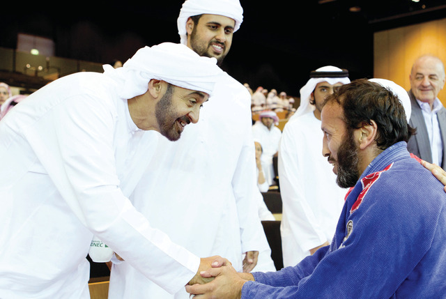 وستظل رياضة الجو جيتسو حالها حال كافة الرياضات- محظوظة بدعم ورعاية الفريق أول سمو الشيخ محمد بن زايد آل نهيان وهو الدعم الذي كان له أكبر الأثر فيما حققته هذه الرياضة الناهضة من نجاحات باتت تباهي بها كافة الألعاب، ومن يتابع مسيرة هذه الرياضة لابد وأن يتوقف عند دعم سموه اللامحدود لها، والذي كان نقطة التحول الكبرى في مسيرتها، حيث اختزل هذا الدعم العديد من السنوات فبات اليوم يساوي عاماً، وبعد أن حلت اللعبة على الإمارات تنشد موطئاً، تحولت بعد فترة قصيرة إلى رياضة أساسية داخل الحدود، وسرعان ما اخترقت الحدود لتزدهر عالمياً، ولتصبح أبوظبي بالفعل عاصمة هذه الرياضة على مستوى العالم.