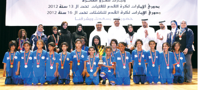 توجت فرق مكتب أبوظبي التعليمي بألقاب دوري الإمارات للفتيات والناشئات لكرة القدم وذلك في الحفل الختامي البهيج الذي أقيم يوم أمس الأول في المسرح الجاهلي بنادي ضباط القوات المسلحة بأبوظبي بتنظيم لجنة كرة القدم للسيدات التابعة لمجلس أبوظبي الرياضي وذلك في ختام برامجها وأنشطتها الكروية على مدار الموسم. حضر الحفل فوزية غريب، وكيل وزارة التربية والتعليم المساعد للشؤون التعليمية، ومحمد سالم الظاهري، المدير التنفيذي لقطاع المدارس بمجلس أبوظبي للتعليم، وحسن لوتاه، مدير إدارة التربية الرياضية في وزارة التربية والتعليم، وطلال الهاشمي، نائب رئيس لجنة كرة القدم للسيدات، وعلياء الحوسني، عضو لجنة كرة القدم للسيدات، بجانب حشد كبير من أولياء الأمور ولاعبات الفرق الفائزة بالمراكز الثلاثة في كل دوري.