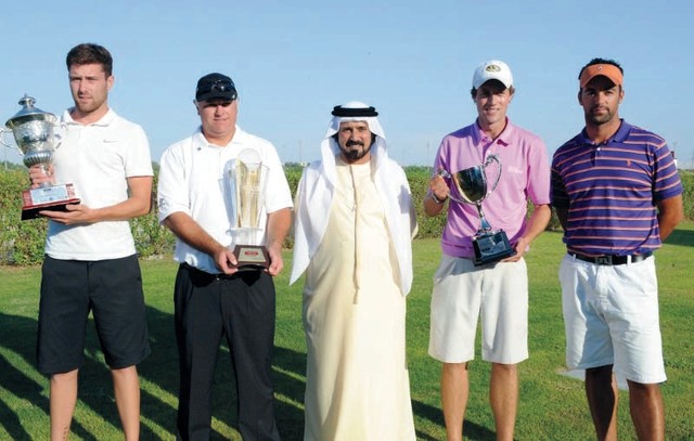 وقام الشيخ فاهم بن سلطان القاسمي رئيس الاتحادين الإماراتي والعربي للغولف بتتويج الفائزين في فئتي المحترفين والهواة أصحاب المراكز الثلاثة الأولى، بتسليمهم الكؤوس والجوائز المالية البالغ إجماليها 70 ألف دولار.