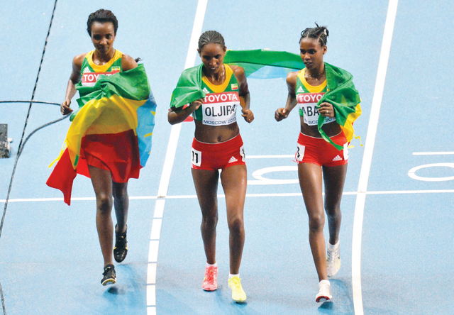 استعادت العداءة الإثيوبية تيرونيش ديبابا، لقبها العالمي وأحرزت الميدالية الذهبية لسباق 10 آلاف متر جري مساء أول من أمس ضمن بطولة العالم 14 لألعاب القوى، لتتتوج بالميدالية الذهبية للمرة الثالثة في مسيرتها الرياضية بعدما قطعت المسافة في 30 دقيقة و35ر43 ثانية، متفوقة على الكينية جلاديز تشيرونو التي احتلت المركز الثاني وأحرزت الفضية بزمن 30 دقيقة و17ر45 ثانية، وذهبت البرونزية للعداءة الإثيوبية الأخرى بيلاينش أولجيرا بزمن 30 دقيقة و98ر46 ثانية، وسبق أن توجت ديبابا باللقب العالمي عامي 2005 و2007، كما أضافت اللقب إلى ميداليتها الذهبية لنفس السباق في دورتي الألعاب الأولمبيتين السابقتين في بكين 2008 و2012.