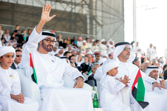 شهد الفريق أول سمو الشيخ محمد بن زايد آل نهيان ولي عهد أبوظبي نائب القائد الأعلى للقوات المسلحة، أمس، انطلاق مهرجان زايد التراثي في الوثبة بأبوظبي تحت شعار" تراثنا هويتنا .. زايد قدوتنا " في دورته الرابعة، الذي يقام تحت رعاية صاحب السمو الشيخ خليفة بن زايد آل نهيان رئيس الدولة، حفظه الله، تزامناً مع الاحتفالات باليوم الوطني الثاني والأربعين لقيام دولة الإمارات.