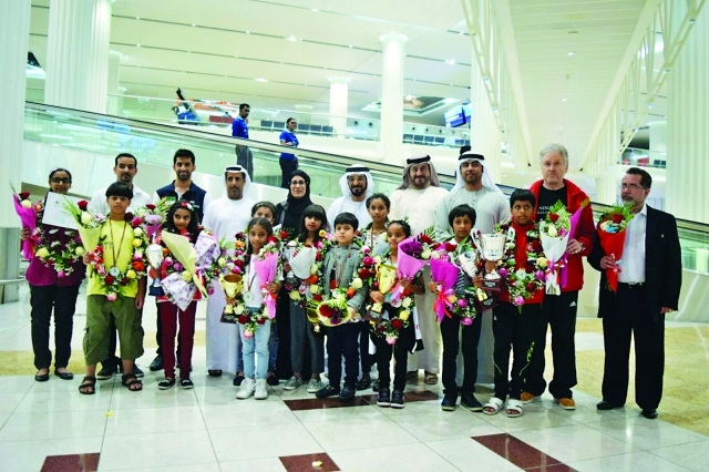 عادت فجر أمس بعثة منتخبنا الوطني للشطرنج بعد مشاركة ناجحة في النسخة الأولى للأولمبياد العربي للشطرنج بمدينة أغادير المغربية، حيث حصل منتخبنا على 11 ميدالية ملونة بواقع 3 ذهبيات ومثلها فضيات و5 ميداليات برونزية، بينها احتلالهم المركز الثالث في الترتيب النهائي للبطولة، وأهدى أبطال العرب مهرة الرميثي وخليفة خالد وعمار السدراني في الفئات العمرية تحت 8 و10 و 12 عاماً الإنجاز إلى القيادة الرشيدة والوطن الغالي، وحظيت البعثة باستقبال حافل بالورود في مطار دبي.