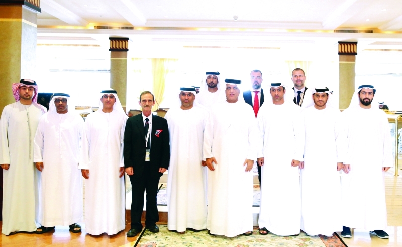 حضر اللقاء المهندس الشيخ سالم بن سلطان بن صقر القاسمي رئيس دائرة الطيران المدني رئيس اتحاد الامارات للمبارزة والشيخ صقر بن محمد بن صقر القاسمي.