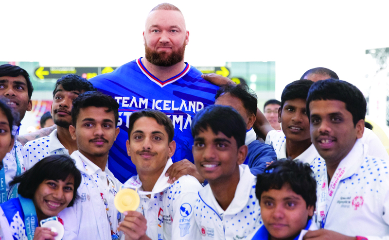 وحرص بيورنسون االنجم العالمي المتوج بلقب أقوى رجل في العالم والذي يصل وزنه إلى نحو 250 كلغم على الوجود في العاصمة أبوظبي، والمشاركة في فعاليات الألعاب العالمية للأولمبياد الخاص خلال المنافسات التي أقيمت بمركز المعارض بأبوظبي، أمس، إذ حرص النجم العالمي على الالتقاء بأصحاب الهمم، والمشاركة في تتويج عدد من الأبطال، وخاصة المتوّجين في رياضة رفعات القوة.