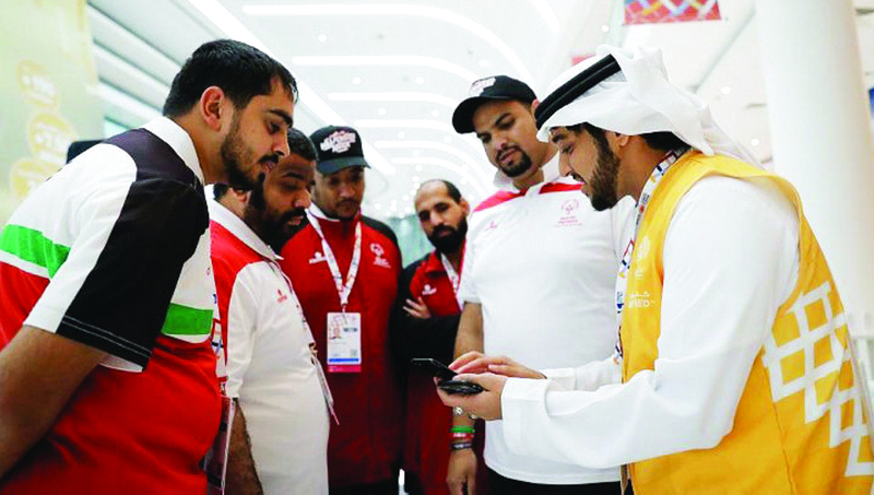 وقال الشاب الإماراتي ذو 21 عاماً: «جئنا لنترك بصمة جميلة في الحدث، ونرسم الابتسامة على وجوه المشاركين، ونساعدهم إذا ما واجهوا أي مصاعب، وكي نهتف لهم كلما حققوا نصراً جديداً».