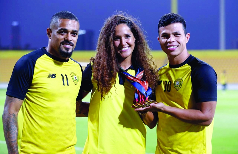 هنأ راشد بالهول رئيس مجلس إدارة نادي الوصل، سباّحة النادي الذهبية التونسية المقيمة سارة الأجنف، مشيداً بإنجازها اللافت في البطولة الدولية المفتوحة للسباحة «الماستر»، التي اختتمت مؤخراً في كوريا الجنوبية، وحصولها على خمس ميداليات منها 4 ذهبيات وبرونزية، جاء ذلك خلال استقبال السباحة الأجنف، مساء أول من أمس، في استاد النادي، بحضور الجهاز الفني ولاعبي الفريق الأول لكرة القدم، وحميد يوسف مدير الفريق، وحرص الجميع على مصافحة اللاعبة وتهنئتها وأخذ عدد من اللقطات معها، ومنهم المحترفان فابيو ليما وويلتون سواريز.