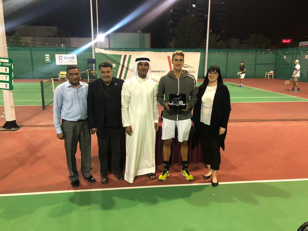 وتوج المرزوقي الفائزين الأوائل بحضور السكرتير الفني للاتحاد صلاح البراملي ومدير نادي تنس الفجيرة سارة، بينما حكم المباراة النهائية العراقي ليث العاني.
