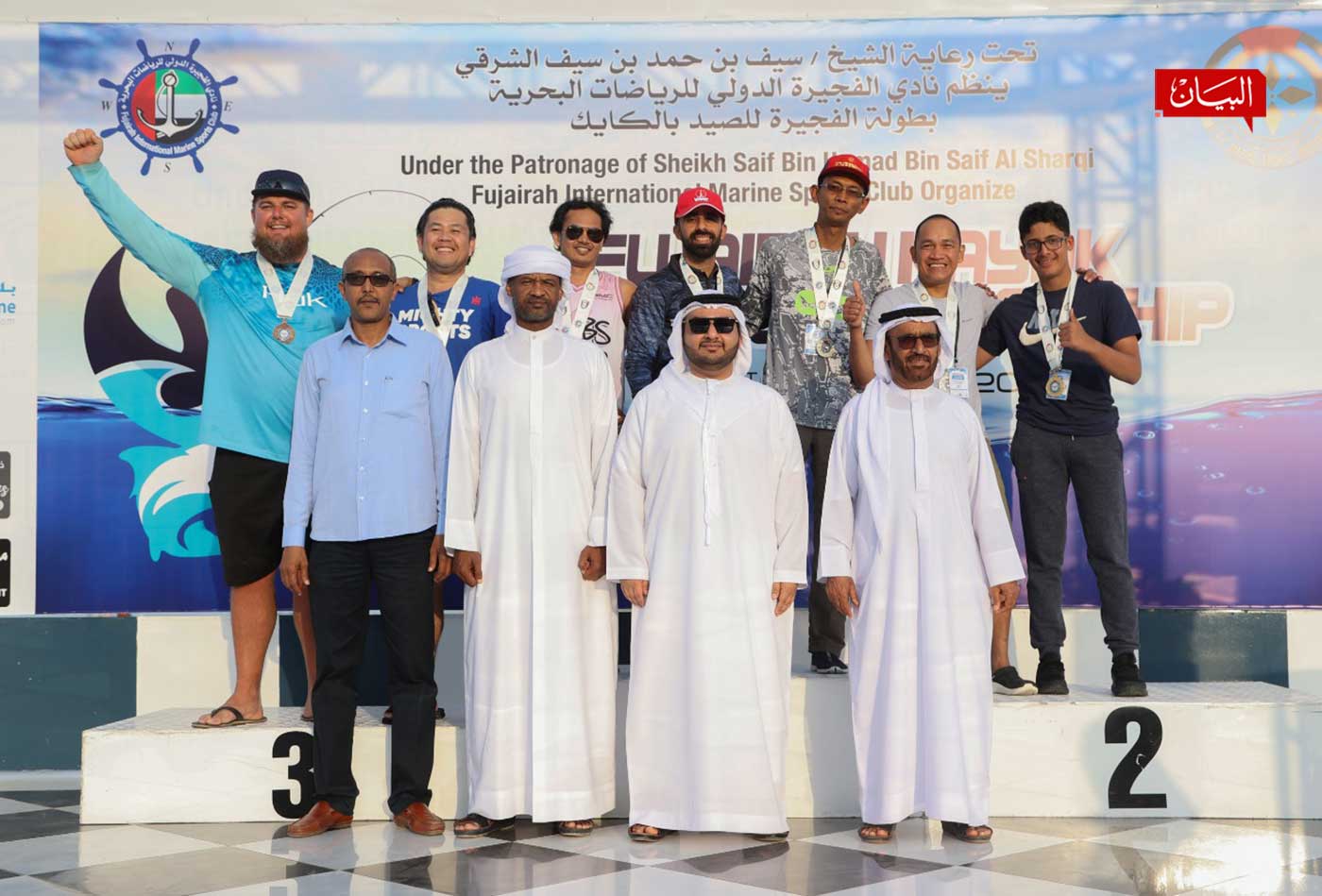 توج الشيخ أحمد بن حمد بن سيف الشرقي الفائزين الأوائل في بطولة الفجيرة للصيد بقوارب الكاياك، التي نظمها نادي الفجيرة الدولي للرياضات البحرية، بمشاركة أكثر من 50 متسابقا يمثلون مختلف الجنسيات، وسط أجواء مفعمة بالحماس والإثارة أسهمت في إضفاء المزيد من النجاح على البطولة.