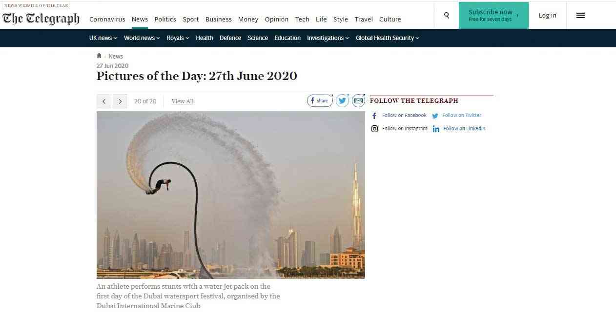 ولقيت الصورة نفسها حظاً من النشر في كبريات الصحف الآسيوية ومن بينها صحيفة "ستريتس تايمز" السنغافورية التي تُعد أكبر الصحف توزيعاً هناك، فيما نشر موقع زي أتليتيك الأمريكي المتخصص في الرياضات الميكانيكية الصورة ضمن أفضل 20 صورة، باعتبار أن الألواح المائية الطائرة تمثل احدى هذه الرياضات المثيرة.