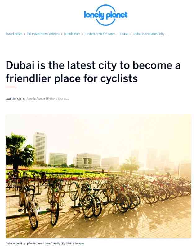 لا تزال الأصداء العالمية لمبادرة سمو الشيخ حمدان بن محمد بن راشد آل مكتوم، ولي عهد دبي، رئيس المجلس التنفيذي، بتحويل دبي إلى مدينة صديقة للدراجات الهوائية متواصلة، حيث أشار موقع «لونلي بلانت»، إلى أن دبي ستتحول إلى ما يشبه أمستردام مستقبلاً وذلك لامتلاكها البنية الأساسية الكفيلة استخدام المجتمع للدراجات الهوائية كأول مدينة في الشرق الأوسط.
