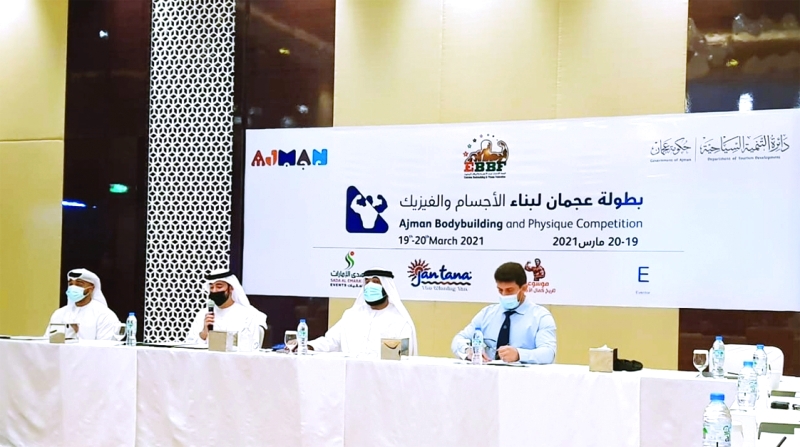 برعاية الشيخ عبد العزيز بن حميد النعيمي رئيس دائرة التنمية السياحية في عجمان، وبالتعاون مع اتحاد بناء الأجسام، تنطلق أول بطولة في عجمان لبناء الأجسام والفيزيك في التاسع عشر من مارس المقبل، وتم أمس الإعلان عن تفاصيل البطولة في المؤتمر الصحفي الذي عقدته اللجنة المنظمة بحضور علي بن حيدر نائب رئيس اتحاد بناء الأجسام وسعود عبد العزيز الجسمي مدير الفعاليات بدائرة التنمية السياحية في عجمان وأحمد جوهر رئيس لجنة المنتخبات الوطنية.