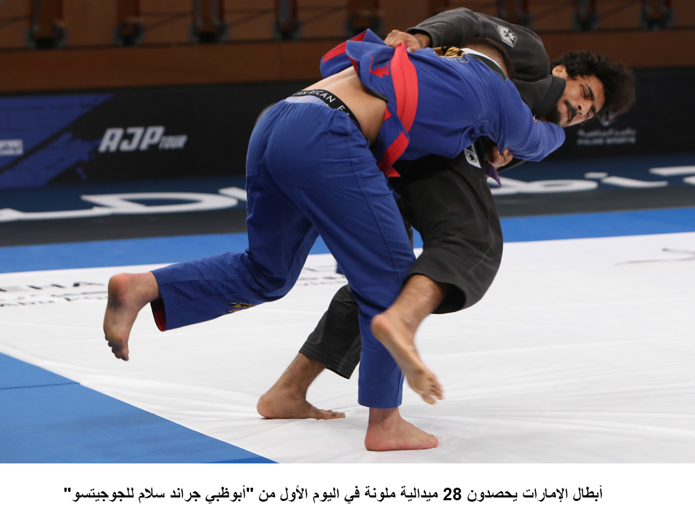 حصد أبطال الإمارات 28 ميدالية ملونة في منافسات اليوم الأول من بطولة أبوظبي جراند سلام للجوجيتسو التي انطلقت في العاشرة من صباح اليوم بصالة "جوجيتسو - أرينا" في مدينة زايد الرياضية بالعاصمة أبوظبي بمشاركة ما يقرب من 500 لاعب ولاعبة من 52 دولة حول العالم، وتستمر نزالاتها حتى مساء غد السبت على جوائز مالية تقدر بـ 225 ألف دولار.