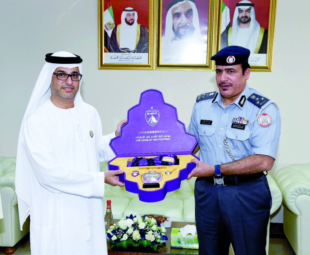 في ختام الزيارة تبادل الدكتور مطر الدرمكي، والعميد جمعة سالم الكعبي، الدروع التذكارية، وضم وفد العين، سالم الجنيبي عضو مجلس إدارة شركة نادي العين لكرة القدم، وعبدالله علي مشرف الفريق الأول لكرة القدم، وخلفان الشامسي المدير الرياضي لشركة كرة القدم، ولاعبي الفريق الأول «الدولي» التونسي ياسين مرياح، ومحمد عباس، وكرستيان جوانكا، الذين حرصوا بدورهم على إهداء مدير مديرية الشرطة والضباط وضباط الصف والأفراد قميص نادي العين الرسمي الذي حمل توقيع جميع لاعبي الفريق الأول، تعبيراً عن خالص شكرهم وتقديرهم.