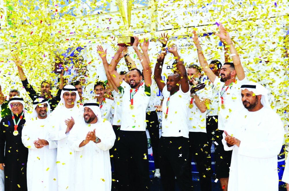 وتوج حميد بولاحج الرميثي رئيس شركة نادي بني ياس للألعاب الرياضية الفرق خلال مراسم التتويج عقب نهاية البطولة التي أقيمت بصالة بني ياس.