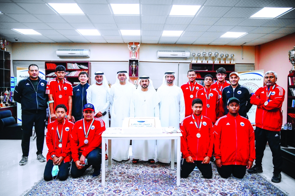 وأوضح رئيس إدارة الألعاب الفردية، خلال كلمته في الاحتفالية التي أقيمت بمجلس الإدارة في الحزانة، أن النتائج المحققة، نتاج عمل المنظومة كاملة، من جهاز إداري وفني، مشيداً باللاعبين، وبروح العزيمة والإصرار التي تحلوا بها، وبفضلها حققوا المركز الأول عن جدارة واستحقاق، ومشيراً إلى أن الإدارة تعمل على الدوام، لتوفير بيئة مثالية للاعبين، وتلبية كافة المتطلبات، لتحقيق أفضل النتائج.