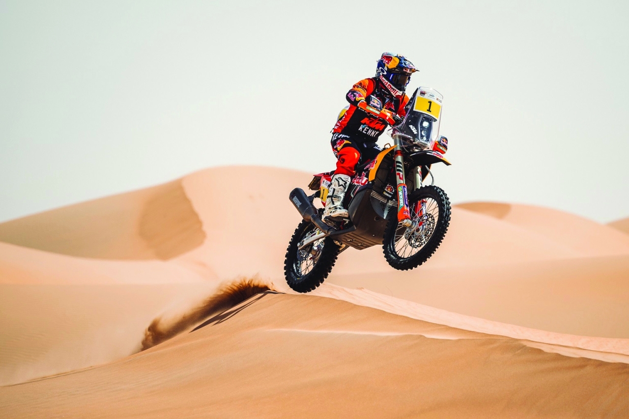 وأثبت الدراج كيفن بينافيدس روحه الرياضية العليا وهو يتوقف لأكثر من 20 دقيقة لمساعدة مايكل دوكيرتي متصدر فئة الدراجات النارية في المرحلة الأولى بعد أن سقط عن دراجته، قبل أن يستأنف ويتولى الصدارة لاحقاً، وتصدر نجم كيه تي أم يتصدر الآن بفارق 4 دقائق و 23 ثانية عن الأمريكي ريكي برابيك، بينما جاء الدراج التشيلي إجناسيو كورنيجو على بعد 41 ثانية في المركز الثالث.