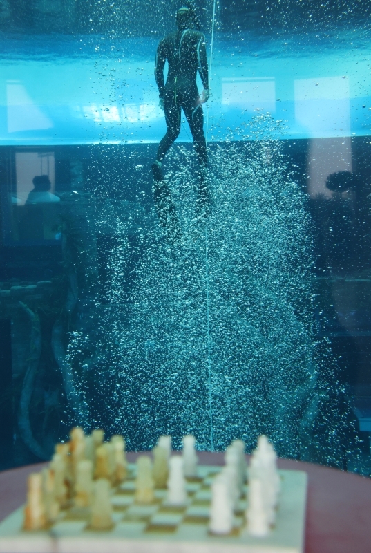 أعمق حوض غوص في العالم، والذي انضم إلى موسوعة «غينيس» للأرقام القياسية بعمق 60 متراً وسعة 14 مليون لتر، بما يساوي ستة مسابح أولمبية. أقيم الحوض على مساحة 1500 متر مربع في منطقة ند الشبا في دبي، صمم على شكل محارة عملاقة احتفاءً بمهنة الغوص لصيد اللؤلؤ والتي شكلت جانباً مهماً من التراث الإماراتي العريق، في دلالة على ارتباط أهل الإمارات بالبحر ورياضة الغوص. ويحتضن حوض «ديب دايف دبي» بيئتين حيويتين تحت الماء مع غرفة جافة على عمق 6 و21 متراً، ومزود بـ 56 كاميرا تغطي جميع زواياه، إضافة إلى أنظمة متطورة للصوت والإضاءة التعبيرية.