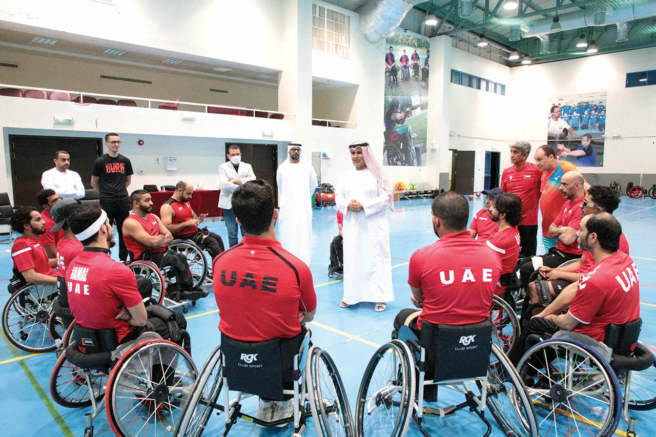 التقى محمد محمد فاضل الهاملي رئيس مجلس إدارة اللجنة البارالمبية الوطنية بلاعبي منتخبنا الوطني لسلة الكراسي المتحركة لأصحاب الهمم خلال معسكر العين حيث نقل تحية أعضاء اللجنة إلى كل المشاركين في المعسكر استعداداً للمشاركة في بطولة آسيا وأوقيانوسيا لسلة الكراسي المتحركة والتي تستضيفها تايلاند في الفترة من 20 وحتى 28 من مايو الجاري.