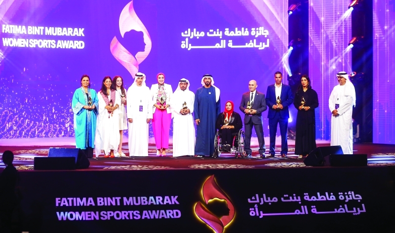 في احتفالية استثنائية بفندق قصر الإمارات الفائزين والفائزات بجائزة فاطمة بنت مبارك لرياضة المرأة لعام 2022 في نسختها السادسة، وتجسد الجائزة منذ انطلاقتها الأولى رؤية «أم الإمارات» في تعزيز مكانة المرأة الرياضية العربية محلياً ودولياً.