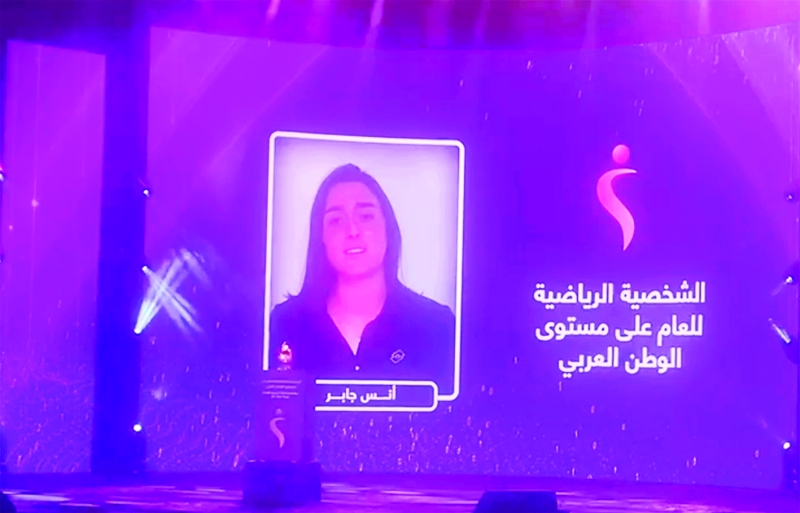ونالت التونسية أُنس جابر نجمة التنس العالمي جائزة شخصية العام الرياضية، تقديراً لإنجازاتها التاريخية على صعيد اللعبة، بوصولها للمركز الثاني في التصنيف العالمي للاعبات المحترفات، ونهائي بطولتي ويمبلدون وأمريكا المفتوحة، كأول لاعبة عربية وأفريقية تصل للنهائي ببطولات«غراند سلام».