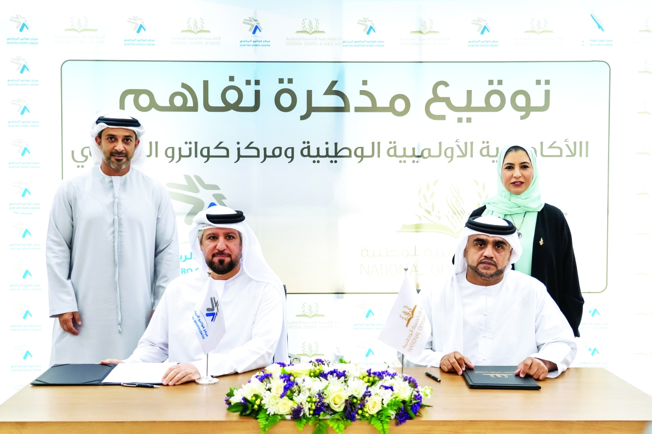 بحضور الشيخ عبد العزيز بن حميد النعيمي رئيس مجموعة عجمان القابضة التي تمتلك مركز كواترو الرياضي في عجمان تم توقيع مذكرة تفاهم مشتركة بين مركز كواترو الرياضي بالأكاديمية الأولمبية الوطنية التابعة للجنة الأولمبية الوطنية.