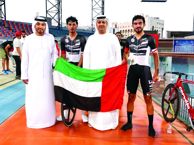 حصدت دراجات الإمارات أمس 8 ميداليات جديدة في البطولة العربية للمضمار بالقاهرة، وفاز أبطالنا بثلاث ميداليات ذهبية و3 فضيات وبرونزيتين جدد، وارتفع حصاد الإمارات إلى 28 ميدالية (9 ذهبيات و13 فضية و6 برونزيات)، بالمركز الثاني للترتيب العام، فيما تختتم البطولة اليوم، ويشارك يوسف ميرزا، وأحمد المنصوري في سباق الماديسون الأولمبي.