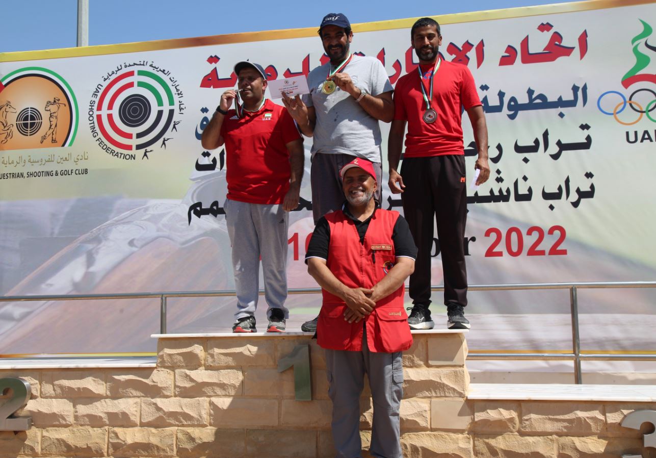 فاز الرامي سيف الشامسي بلقب مسابقة رماة التراب رجال في بطولة الإمارات الرابعة لرماية الأطباق من الحفرة "التراب" للرجال والسيدات والناشئين وأصحاب الهمم والتي نظمها اتحاد الإمارات للرماية على ميادين نادي العين للفروسية والرماية والجولف.