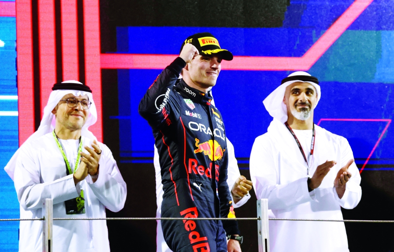 توج سمو الشيخ خالد بن محمد بن زايد آل نهيان عضو المجلس التنفيذي لإمارة أبوظبي، رئيس مكتب أبوظبي التنفيذي، الهولندي ماكس فيرستابن سائق فريق ريد بل بطلاً لسباق جائزة الاتحاد للطيران الكبرى، الجولة الختامية لبطولة العالم للفورمولا1 (2022)، على مضمار حلبة مرسى ياس بالعاصمة أبوظبي، والتي أسدل الستار على فعالياتها، أمس.