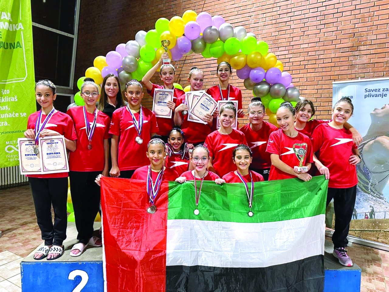 فازت أكاديمية اسبيدوا التابعة لاتحاد الإمارات للسباحة بـ 20 ميدالية فضية و4 ميداليات برونزية خلال مشاركتها في البطولة الدولية لناشئي الباليه المائي، والتي اختتمت مؤخراً في العاصمة الصربية بلغراد، وشارك فيها 250 لاعبة يمثلن 8 دول هي صربيا الدولة المستضيفة والإمارات وتركيا وسلوفاكيا والمجر ومالطا والجمهورية التشيكية وبلغاريا.