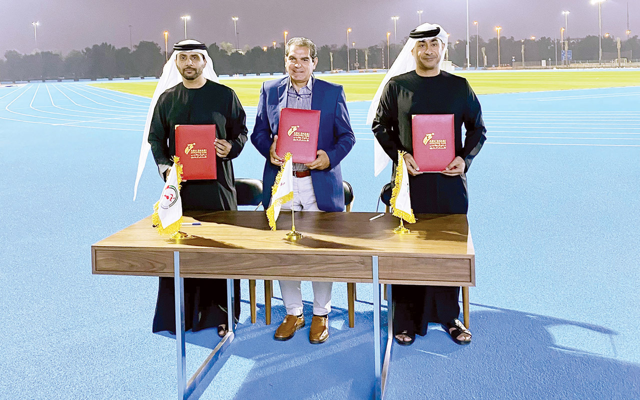 وقع نادي أبوظبي لألعاب القوى مذكرة تفاهم مع مركز تنمية ألعاب القوى بالقاهرة التابع للاتحاد العالمي للألعاب القوى تمتد 4 سنوات، بهدف التعاون في مجال تبادل الخبرات الفنية والإدارية ومجالات التحكيم وتدريب ألعاب القوى والاهتمام بالمواهب، وشهد توقيع المذكرة الدكتور محمد عبدالله المر رئيس اتحاد الإمارات لألعاب القوى، ووقعها خالد الزعابي رئيس مجلس إدارة نادي أبوظبي لألعاب القوى، والدكتور حمدي عبدالرحيم مدير مركز تنمية ألعاب القوى المصري.
