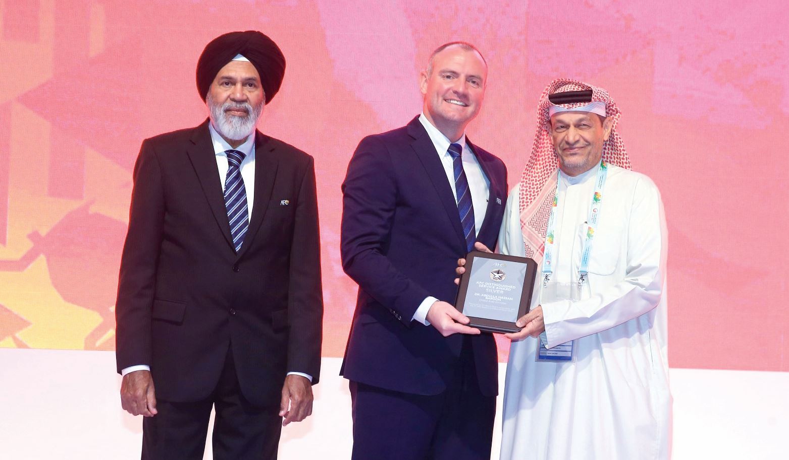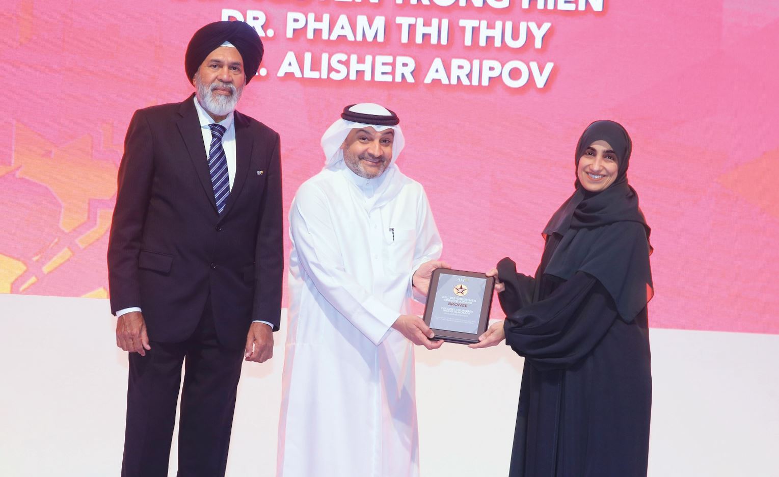 كرم الاتحاد الآسيوي لكرة القدم مرشحي اتحاد الإمارات العربية لكرة القدم الدكتور عبدالله حسن بارون، والدكتورة ريمة الحوسني بالجائزتين الفضية والبرونزية ضمن جوائز الاتحاد الآسيوي لكرة القدم للتميز الطبي على هامش مؤتمر الاتحاد الآسيوي للطب الرياضي المقام في العاصمة القطرية الدوحة في الفترة من 4 إلى 6 الجاري والذي يُشارك في فعالياته الدكتور مصطفى السيد الهاشمي رئيس لجنة الطب الرياضي، والدكتور أحمد إبراهيم عضو اللجنة، بالإضافة إلى الدكتور زوران ستانكوفيك طبيب المنتخبات الوطنية.