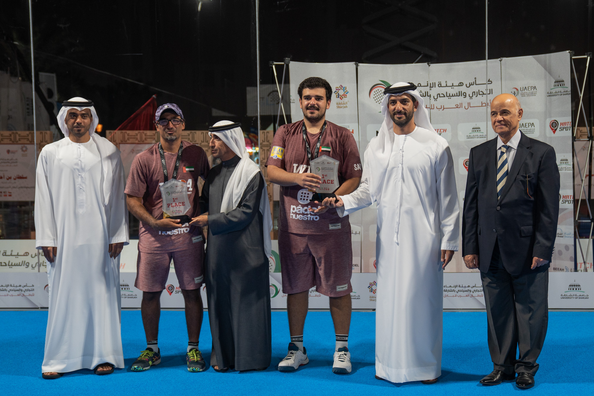 توج سمو الشيخ سلطان بن أحمد بن سلطان القاسمي نائب حاكم الشارقة رئيس جامعة الشارقة، منتخب الإمارات المكون من اللاعبين عبدالله أهلي وعمر بهرزيان بكأس أبطال العرب للبادل تنس وذلك بعد فوزه في المباراة النهائية على منتخب قطر المكون من اللاعبين محمد سعدون وعبدالله حجي.