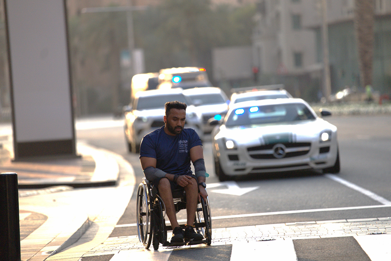 مدعوماً بالقيادة العامة لشرطة دبي، نجح رياضي مقيم في دبي من تحقيق رقمٍ قياسي عالمي من خلال رسم أكبر مسار على كرسي متحرك عبر خرائط جوجل. حيث نجح في المرور عبر منطقة برج خليفة ودبي مول لرسم شعار أصحاب الهمم المتمثل بالكرسي المتحرك بهدف إرسال رسالة عالمية عبر هذا الرقم القياسي عن نجاح دبي في تعزيز الوصول لأصحاب الهمم.