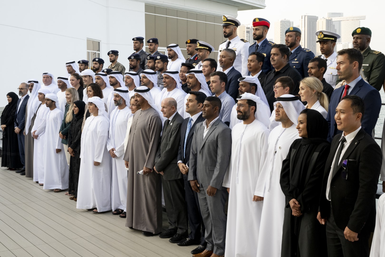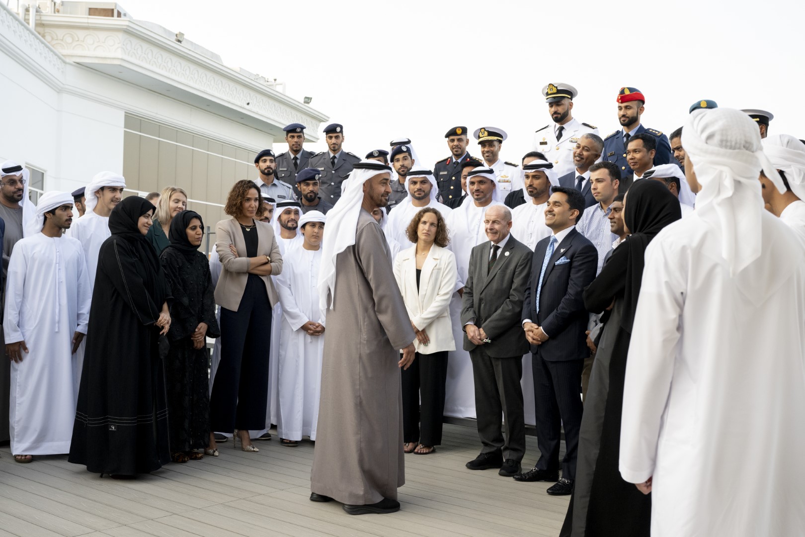 استقبل صاحب السمو الشيخ محمد بن زايد آل نهيان رئيس الدولة “حفظه الله”، "فريق سباحة 62 " الذي قطع مسافة 62 كيلومتراً سباحة حول جزيرة أبوظبي.