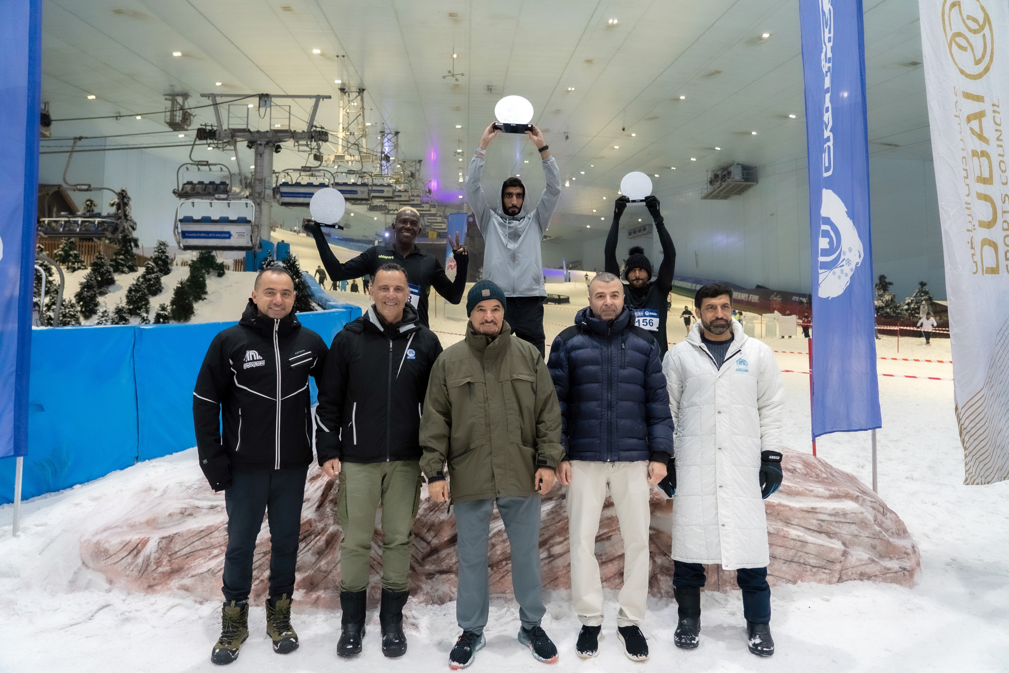 وفي ختام السباق، قام سعيد حارب، أمين عام مجلس دبي الرياضي بتتويج الفائزين بالمراكز الأولى، بحضور ناصر أمان آل رحمة، مساعد أمين عام المجلس، وإيجنيس لحود، الرئيس التنفيذي لمجموعة ماجد الفطيم للتسلية والترفيه والسينما، ومحمد العطري، نائب رئيس مشاريع الثلج العالمية بالمجموعة.