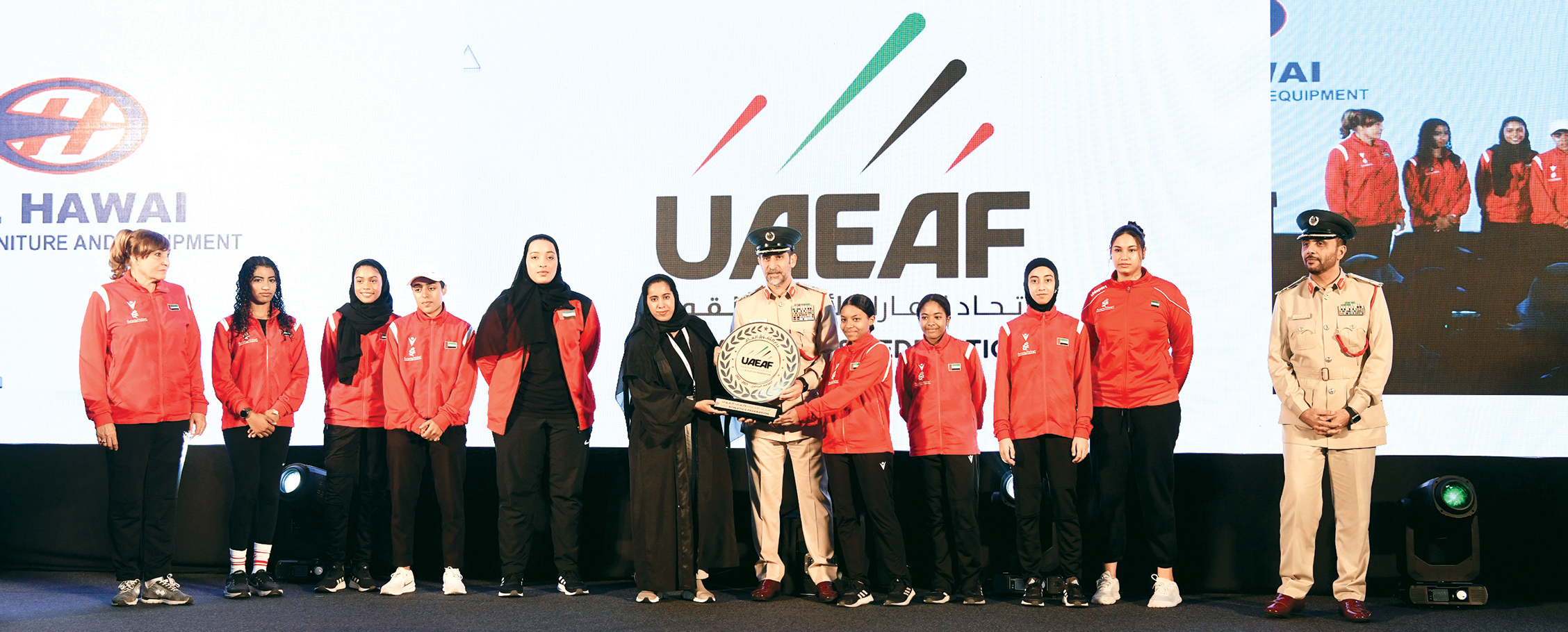 وكرم معاليه اللاعبين واللاعبات من أصحاب الإنجازات الدولية وهم: اللاعبة فاطمة يوسف الحوسني الفائزة بالميدالية الذهبية في رمي القرص، وميدالية فضية في دفع الجلة بدورة الألعاب الخليجية في الكويت، و«الميدالية الفضية في مسابقة دفع الجلة، وميدالية برونزية في رمي القرص في بطولة غرب آسيا المنظمة في قطر».
