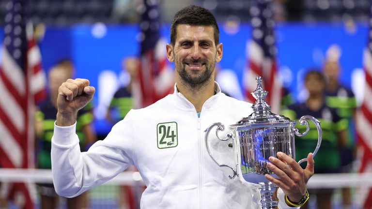 فاز نوفاك ديوكوفيتش على دانييل ميدفيديف 6-3 و7-6 و6-3 في نهائي بطولة أمريكا المفتوحة للتنس الأحد ليعادل الرقم القياسي التاريخي لمارجريت كورت الحاصلة على 24 لقبا بالبطولات الأربع الكبرى.
