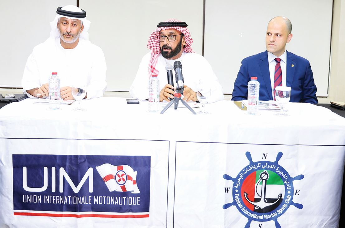تحت رعاية سمو الشيخ محمد بن حمد بن محمد الشرقي ولي عهد الفجيرة، تستضيف الفجيرة منافسات الجولة الرابعة والأخيرة من بطولة العالم للزوارق السريعة فئة «الإكس كات» جائزة الفجيرة الكبرى المقررة إقامتها في الفترة من الأول من ديسمبر المقبل وحتى الثالث منه، بمشاركة 9 زوارق يتقدمها زورق «فزاع» ممثل الإمارات الوحيد في الجولة الختامية بقيادة الثنائي عارف الزفين ونادر بن هندي، إلى جانب زوارق أخرى من الكويت وأستراليا وبريطانيا وإيطاليا، جاء ذلك خلال المؤتمر الصحافي الذي عقدته اللجنة العليا أمس بحضور أحمد إبراهيم المدير التنفيذي ورئيس لجنة الزوارق السريعة بالاتحاد الدولي، ومحمد عبد الله حارب المدير التنفيذي لنادي دبي البحري.