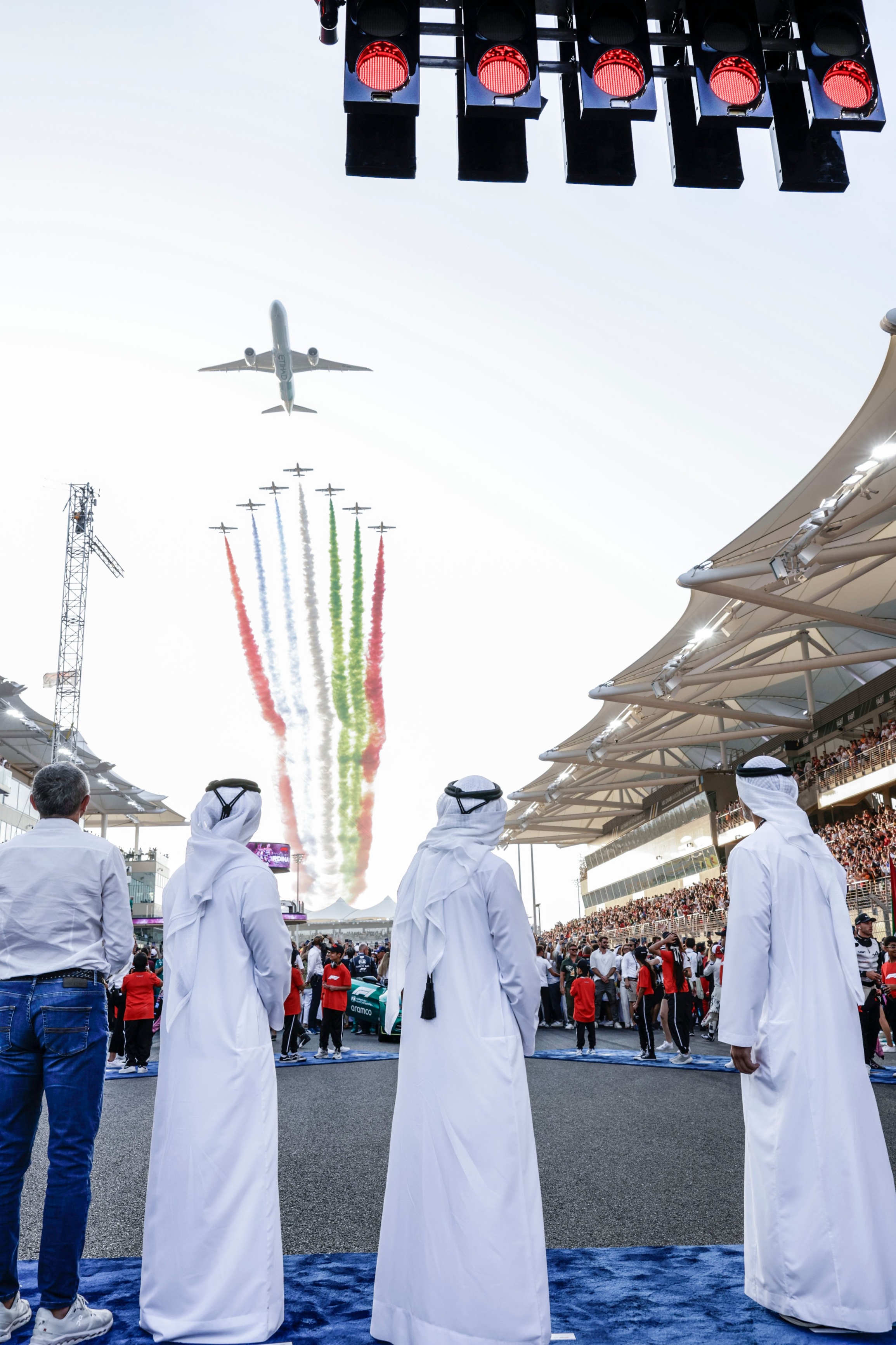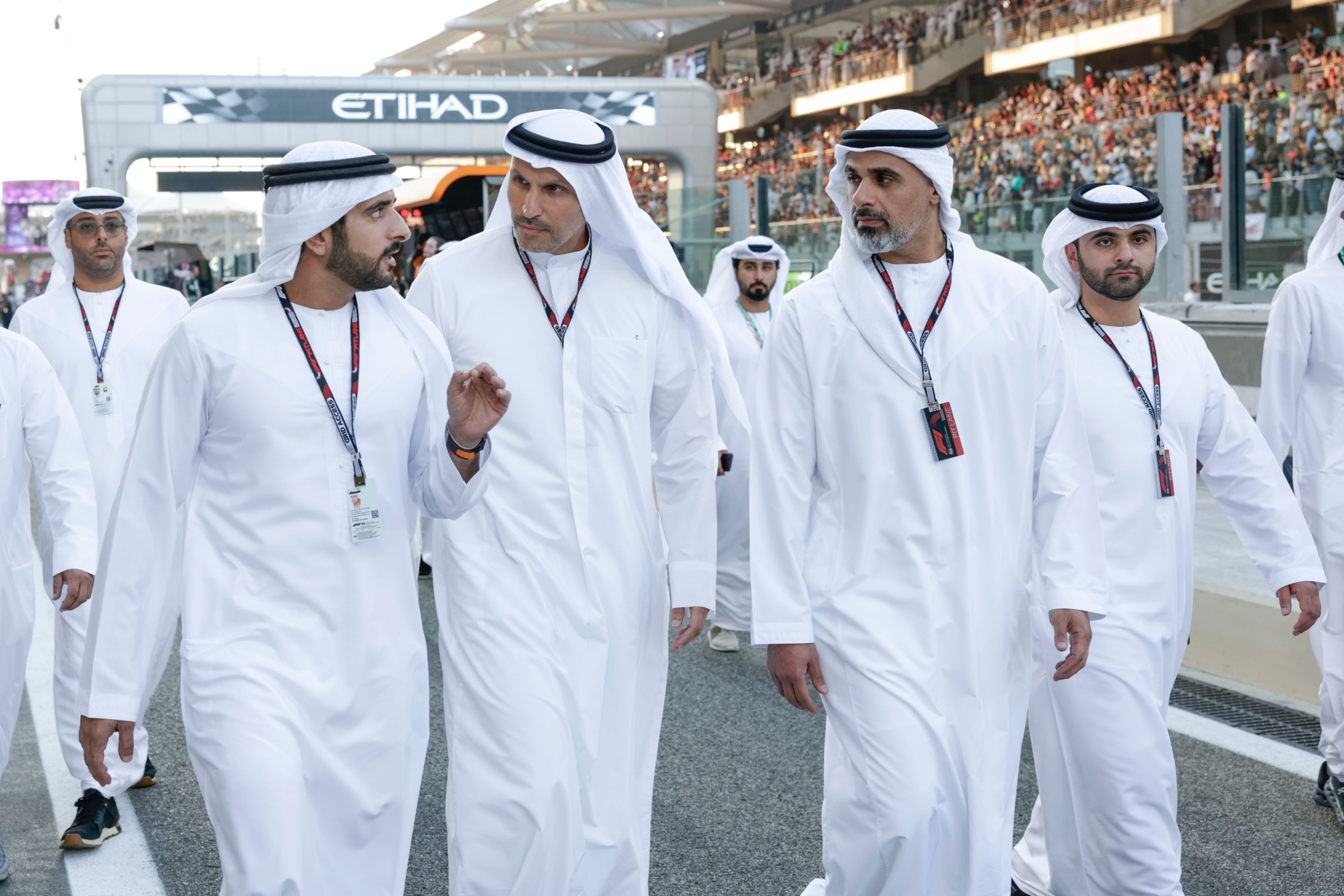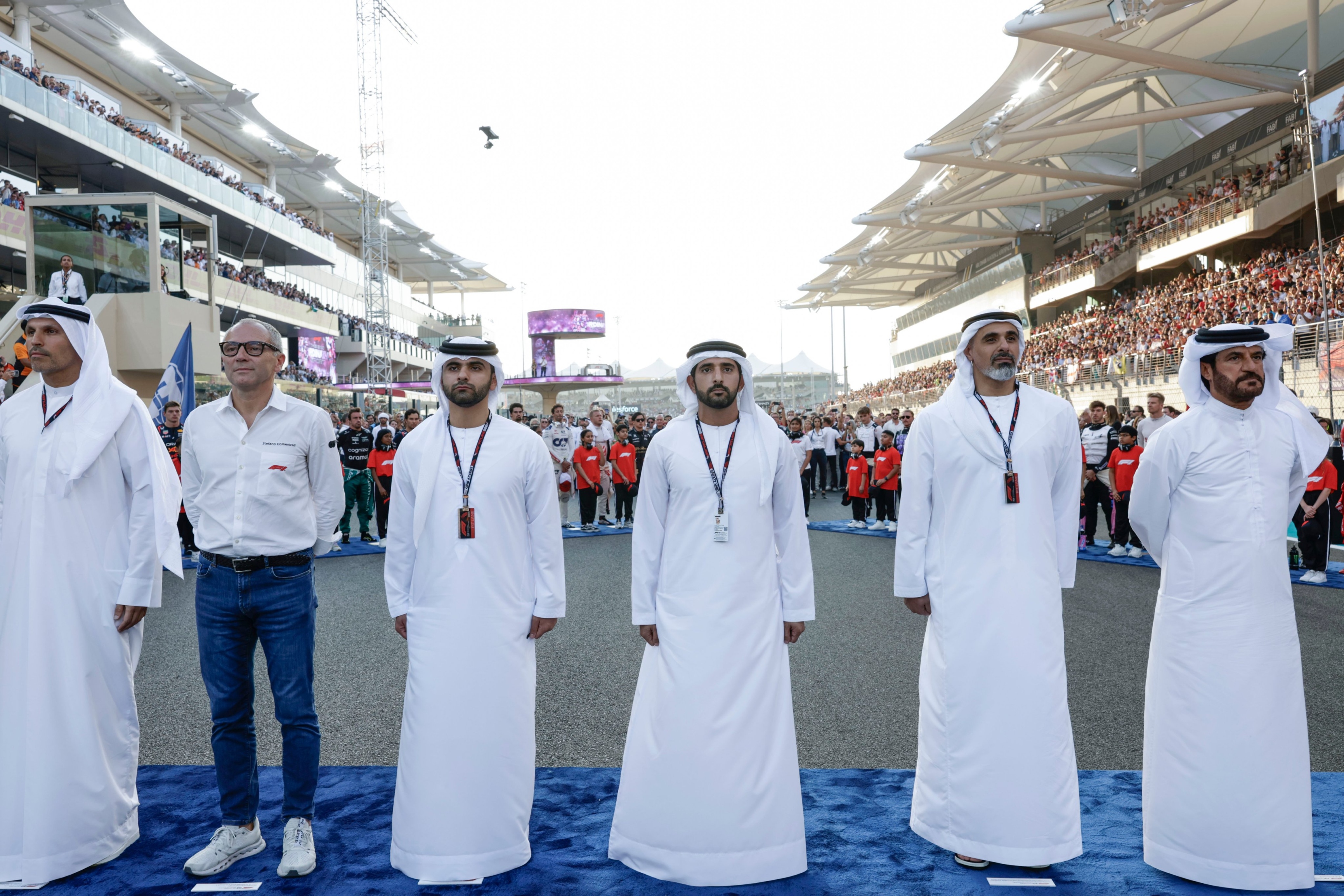 وكان سمو الشيخ خالد بن محمد بن زايد آل نهيان وسمو الشيخ حمدان بن محمد بن راشد آل مكتوم قد حضرا إلى نقطة انطلاق مركبات سباق"أبوظبي 2023" معلنين انطلاق الجولة الختامية لبطولة العالم بعد عزف السلام الوطني لدولة الإمارات العربية المتحدة.