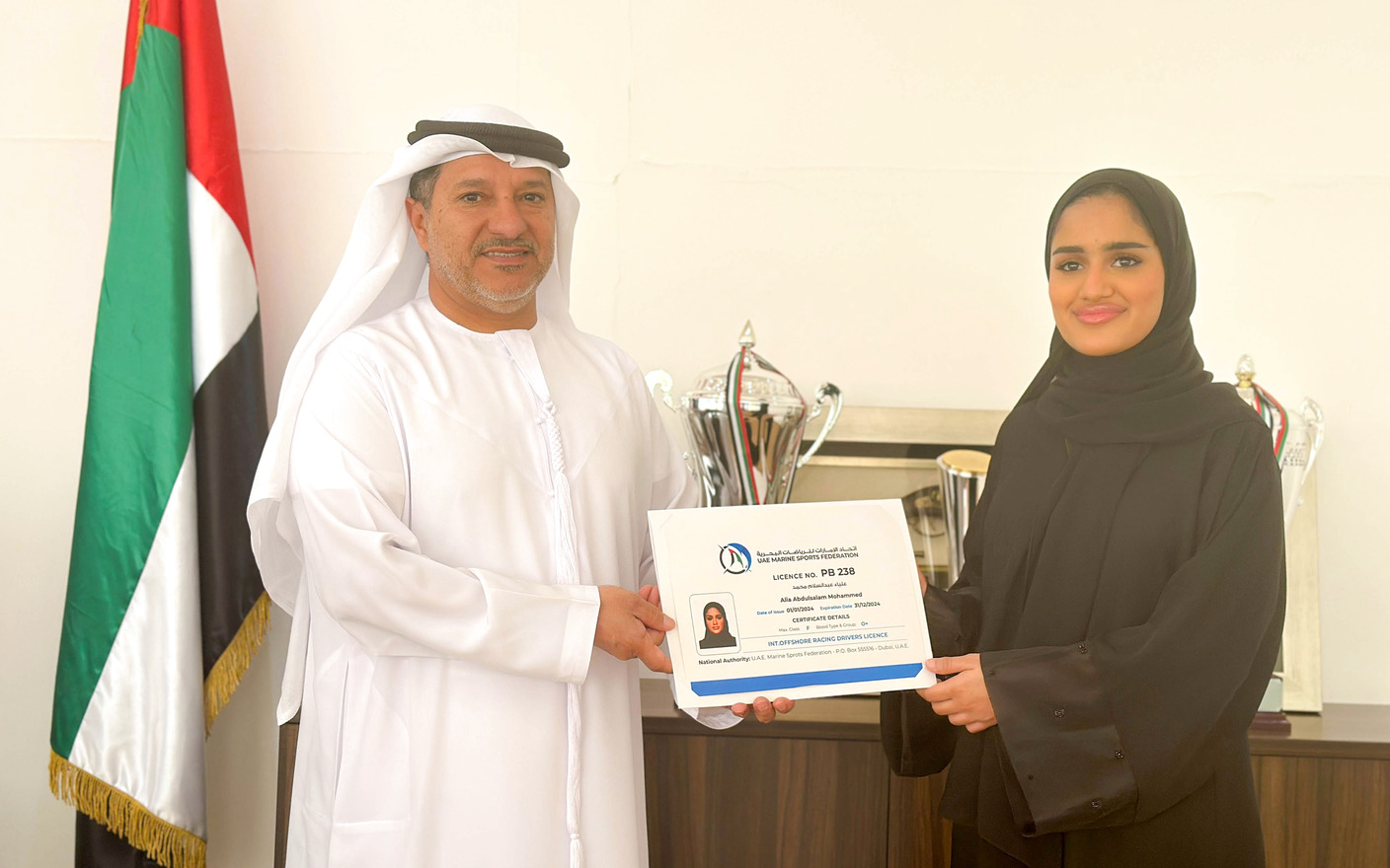 حققت علياء عبدالسلام البالغة من العمر 21 عاماً إنجازاً تاريخياً، بحصولها على الرخصة الدولية للقيادة رسمياً في سباقات الزوارق السريعة بمختلف البطولات، لتصبح أول امرأة إماراتية تحصل على تلك الرخصة للمشاركة في سباقات زوارق الفورمولا 4.