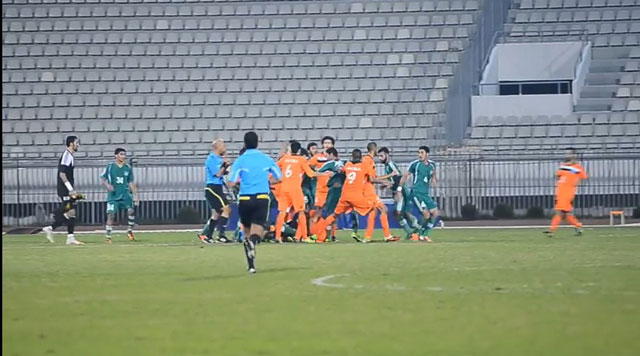 شهدت مباراة كاظمة والعربي في دوري الشباب (20 سنة) الكويتي لكرة القدم، مساء أمس الاثنين، معركة دموية بين لاعبي الفريقين، تطورت لاستخدام السلاح الابيض والآلات الحادة في مشهد هزلي.
