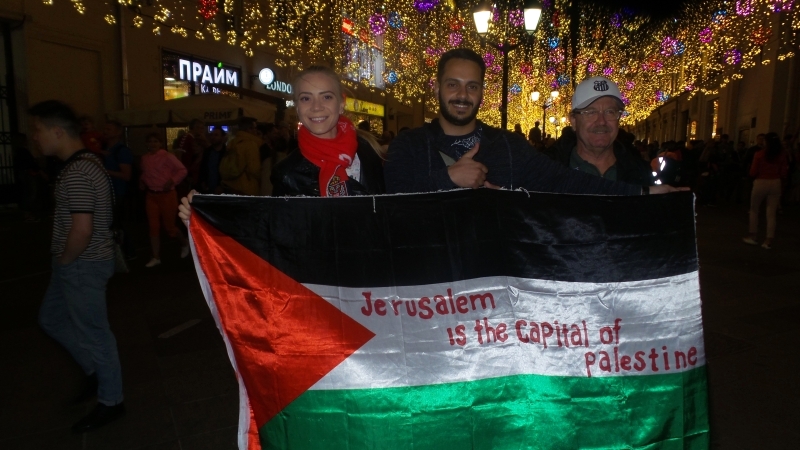 والمشهد ذاته تكرر في الساحة الحمراء بموسكو.. عرب يجبرون سليل الاحتلال على إخفاء علمه، وأحياناً انتزاعه.