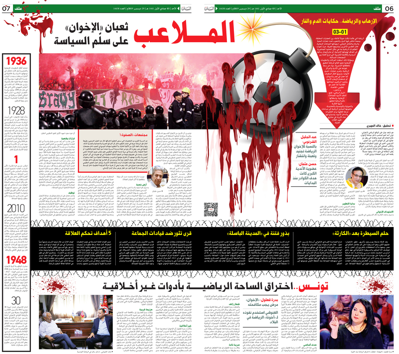 «البيان الرياضي» تفتح الملف الأسود للجماعات الإرهابية، واستغلالها عالم الرياضة لتحقيق مآربها الفكرية والتمويلية واللوجستية والتحشيدية، وتحويلها الميادين الرياضية إلى مساحات مرعبة تغطيها نيران التفجيرات والدخان الأسود، وتستباح فيها دماء الأبرياء في مشاريع «طيور الظلام» العبثية.