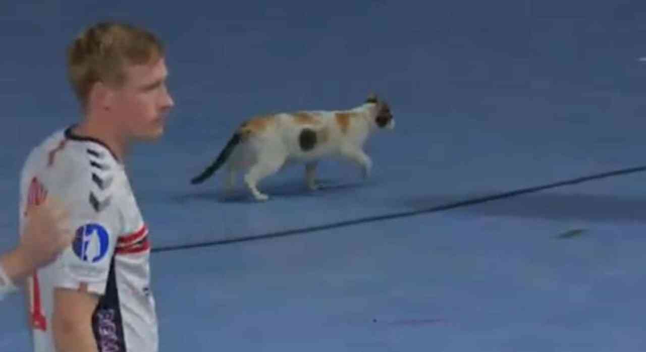 اقتحمت قطة ملعب مباراة النرويج وسويسرا أمس، في صالة حسن مصطفى بمدينة ٦ أكتوبر، ضمن منافسات كأس العالم لكرة اليد للرجال في نسختها الـ 27 والتي تحتضنها مصر حالياً.