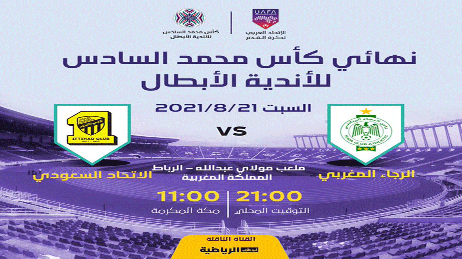 يلتقي الرجاء وضيفه الاتحاد السعودي في نهائي كأس محمد السادس للأندية الأبطال، على ملعب مولاي عبد الله في الرباط