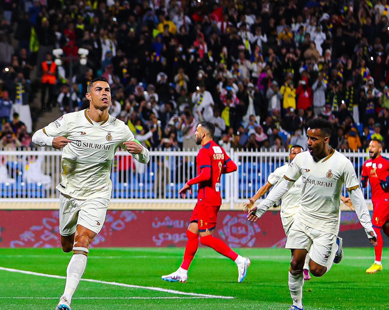 ورفع رونالدو رصيده إلى 8 أهداف في الدوري السعودي منذ انضمامه إلى النصر مطلع العام، علمًا أنه سجل أربعة أهداف "سوبر هاتريك" ضد الوحدة في وقت سابق من الشهر الحالي.