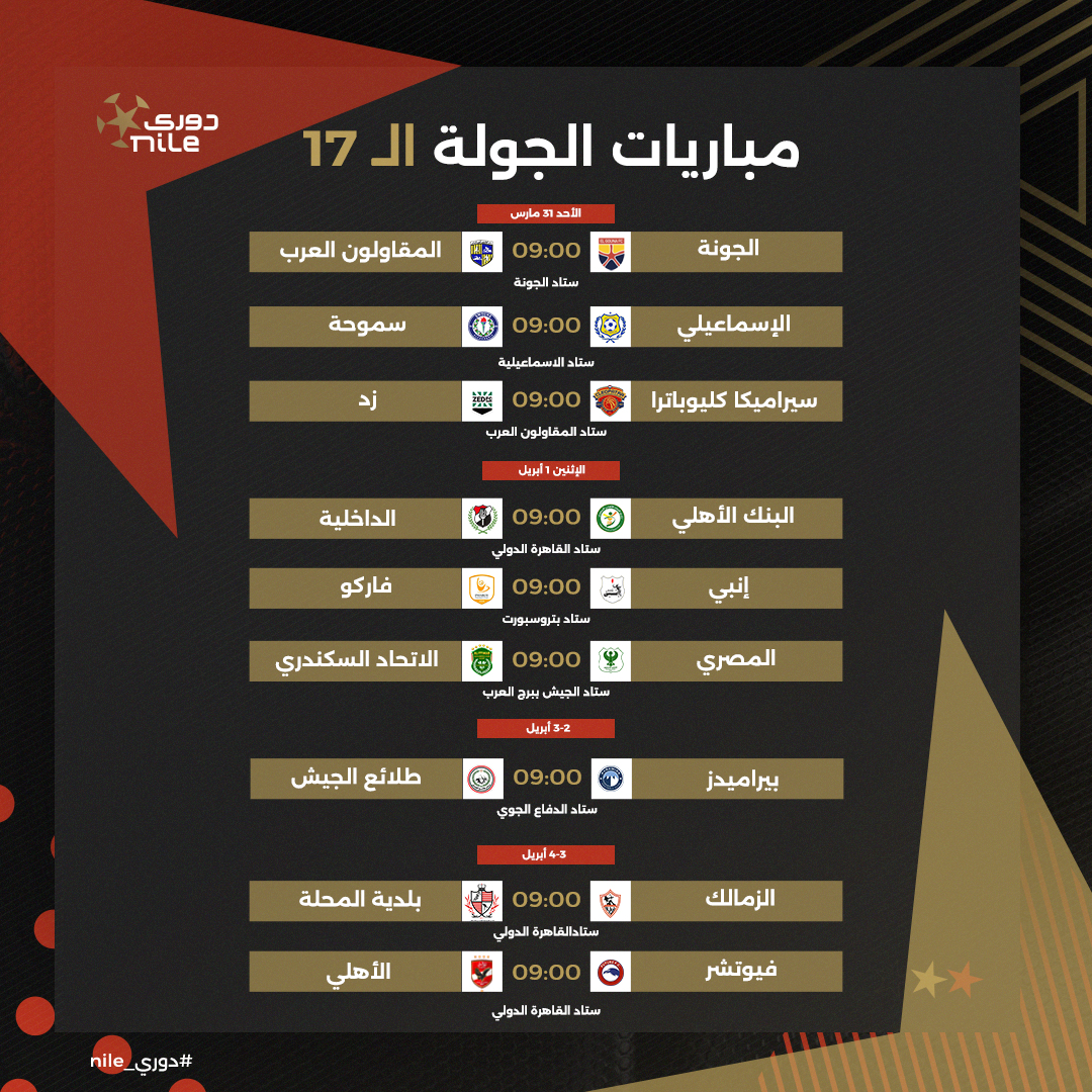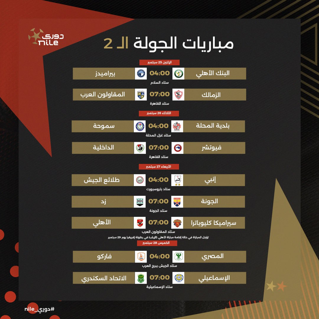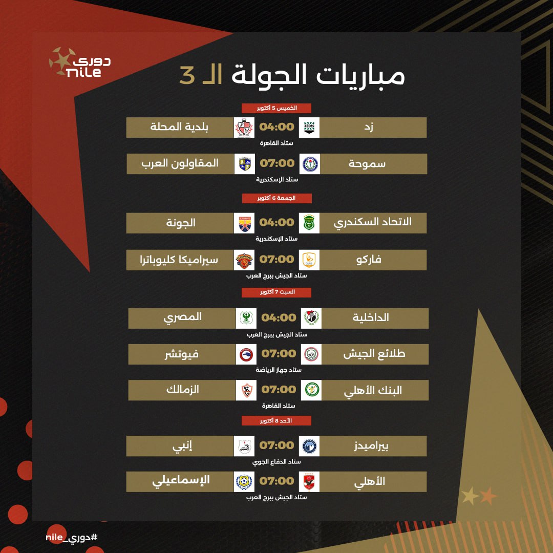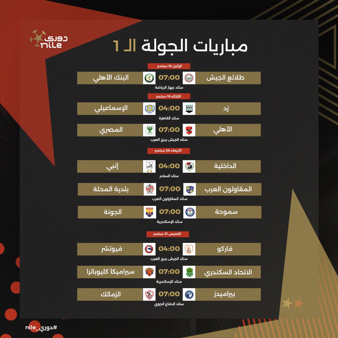 جدول مواعيد الدوري المصري 2024/2023 كاملاً، بتوقيت القاهرة حسب ما أعلنت الرابطة المصرية، علماً بأن فارق توقيت مصر متأخر عن الإمارات بمقدار ساعة.